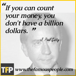 Jean Paul Getty KBE was an American industrialist. He founded the Getty Oil Company, and in 1957 Fortune magazine named him the richest living American, while the 1966 Guinness Book of Records named him as the world's richest private citizen, worth an estimated $1.2 billion. At his death, he was worth more than $2 billion. A book published in 1996 ranked him as the 67th richest American who ever lived, based on his wealth as a percentage of the gross national product... (wikipedia)