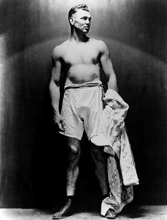 William Harrison "Jack" Dempsey, also known as "Kid Blackie" and "The Manassa Mauler", was an American professional boxer, who became a cultural icon of the 1920s. Dempsey held the World Heavyweight Championship from 1919 to 1926, and his aggressive style and exceptional punching power made him one of the most popular boxers in history. Many of his fights set financial and attendance records, including the first million-dollar gate. Listed at #10 on The Ring's list of all-time heavyweights and #7 among its Top 100 Greatest Punchers, in 1950 the Associated Press voted Dempsey as the greatest fighter of the past 50 years. Dempsey is a member of the International Boxing Hall of Fame, and was inducted into The Ring magazine's Boxing Hall of Fame in 1951... (wikipedia)