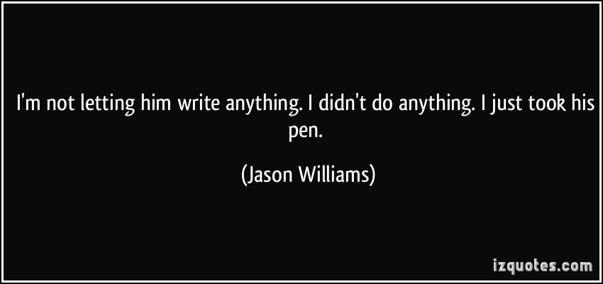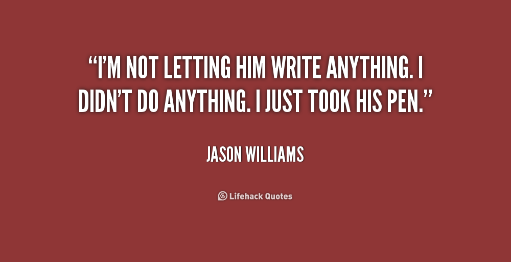 I'm not letting him write anything. I didn't do anything. I just took his pen.