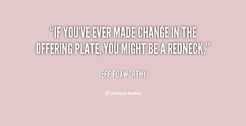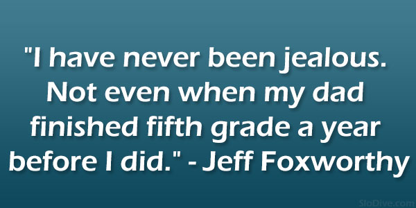 Jeffrey Marshall "Jeff" Foxworthy is an American stand-up comedian, actor, television and radio personality, author, and voice artist. He is a member of the Blue Collar Comedy Tour, a comedy troupe which also comprises Larry the Cable Guy, Bill Engvall, and Ron White. Known for his "You might be a redneck" one-liners, Foxworthy has released six major-label comedy albums. His first two albums were each certified 3× Platinum by the Recording Industry Association of America. Foxworthy has written several books based on his redneck jokes, as well as an autobiography entitled No Shirt, No Shoes... No Problem!... (wikipedia)