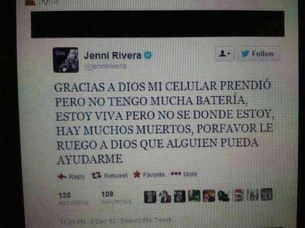 Dolores Janney "Jenni" Rivera was a Mexican-American singer, songwriter, actress, television producer, and entrepreneur known for her work within the regional Mexican music genre. In life and death, several media outlets including CNN, Billboard, Fox News, and The New York Times have labeled her as the most important female figure and top selling female artist in the regional Mexican music genre... (wikipedia)