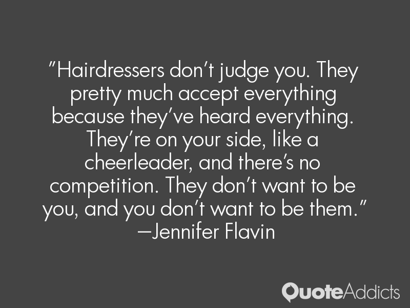 Hairdressers don't judge you. They pretty much accept everything because they've heard everything. They're on your side, like a cheerleader, and there's no competition. They don't want to be you, and you don't want to be them.