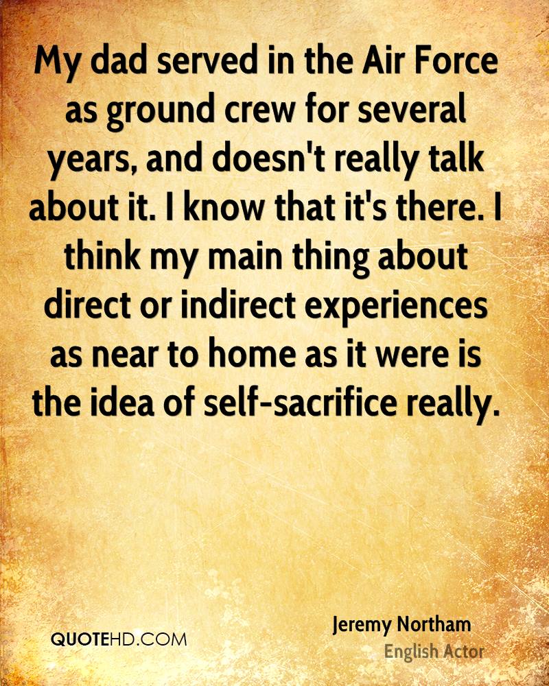 My dad served in the Air Force as ground crew for several years, and doesn't really talk about it. I know that it's there. I think my main thing about direct or indirect experiences as near to home as it were is the idea of self-sacrifice really.