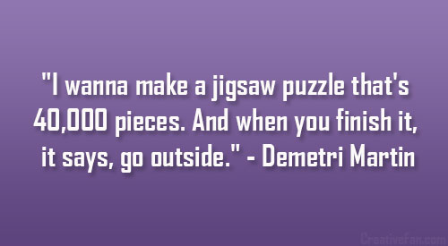 I wanna make a jigsaw puzzle that's 40,000 pieces. And when you finish it, it says 'go outside.'