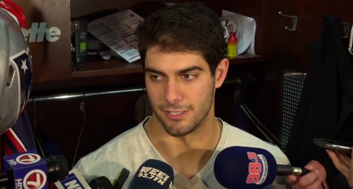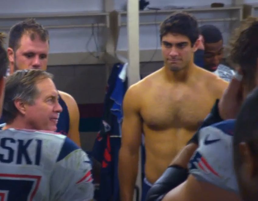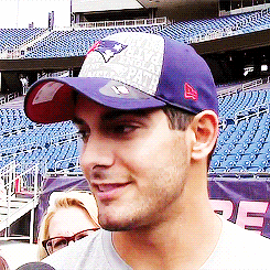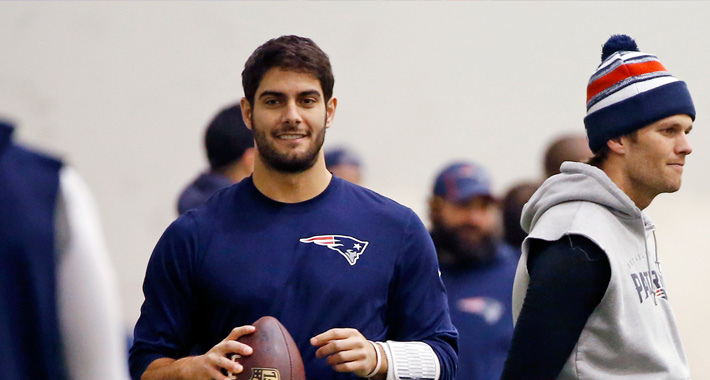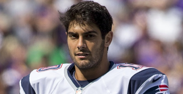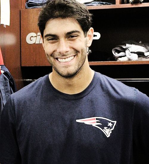 James "Jimmy" Garoppolo is an American football quarterback for the New England Patriots of the National Football League. He was drafted by the Patriots in the second round of the 2014 NFL Draft. He played college football at Eastern Illinois... (wikipedia)