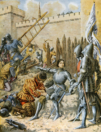 Joan of Arc, nicknamed "The Maid of Orléans" is considered a heroine of France for her role during the Lancastrian phase of the Hundred Years' War, and was canonized as a Roman Catholic saint. Joan of Arc was born to Jacques d'Arc and Isabelle, a peasant family, at Domrémy in north-east France. Joan said she received visions of the Archangel Michael, Saint Margaret, and Saint Catherine instructing her to support Charles VII and recover France from English domination late in the Hundred Years' War. The uncrowned King Charles VII sent Joan to the siege of Orléans as part of a relief mission. She gained prominence after the siege was lifted in only nine days. Several additional swift victories led to Charles VII's coronation at Reims. This long-awaited event boosted French morale and paved the way for the final French victory... (wikipedia)