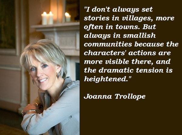 Joanna Trollope OBE is a British writer. She also wrote under the pseudonym of Caroline Harvey. Her novel Parson Harding's Daughter won in 1980 the Romantic Novel of the Year Award by the Romantic Novelists' Association... (wikipedia)