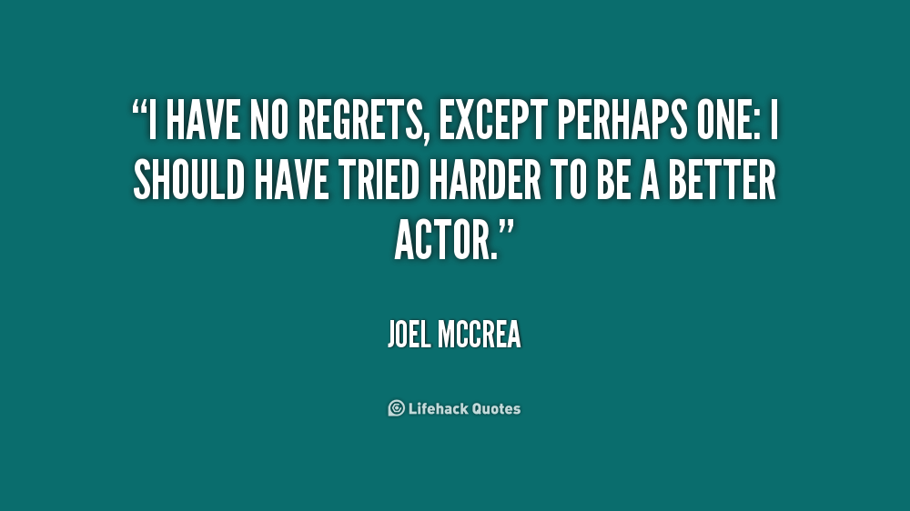 I have no regrets, except perhaps one: I should have tried harder to be a better actor.
