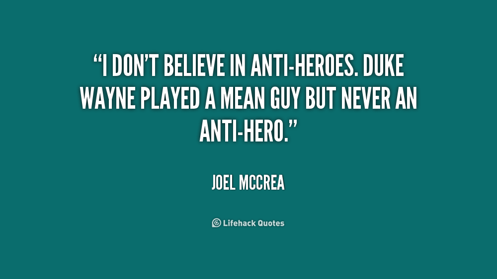 I don't believe in anti-heroes. Duke Wayne played a mean guy but never an anti-hero.