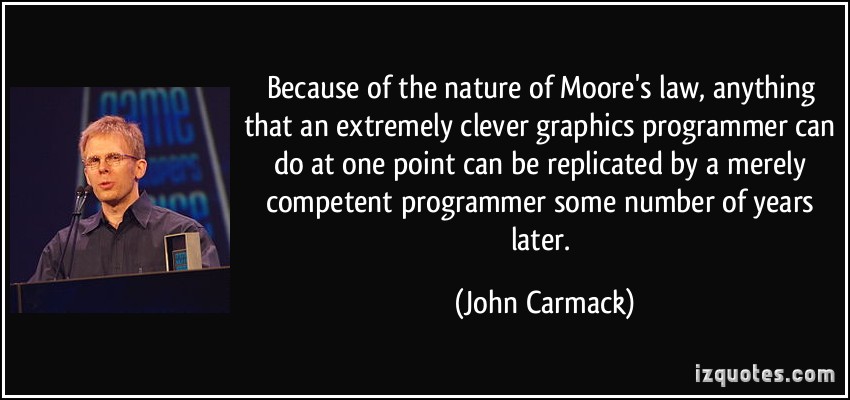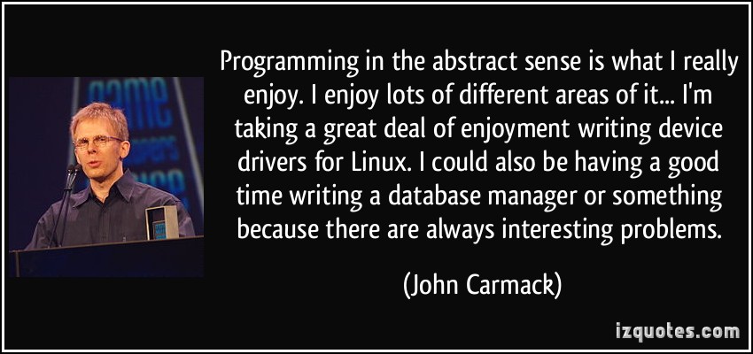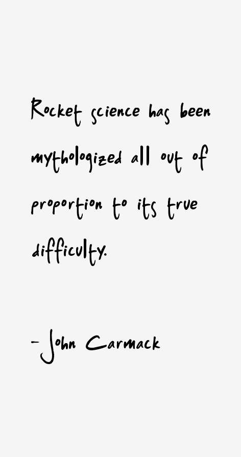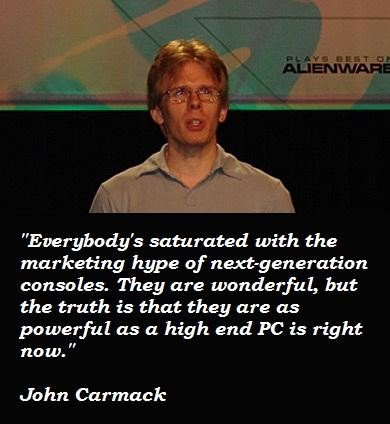 John D. Carmack is an American game programmer, aerospace and virtual reality engineer. He co-founded Id Software. Carmack was the lead programmer of the Id video games Commander Keen, Wolfenstein 3D, Doom, Quake, Rage and their sequels. Carmack is best known for his innovations in 3D graphics, such as his famous Carmack's Reverse algorithm for shadow volumes, and is also a rocketry enthusiast and the founder and lead engineer of Armadillo Aerospace. In August 2013, Carmack took the position of CTO at Oculus VR... (wikipedia)