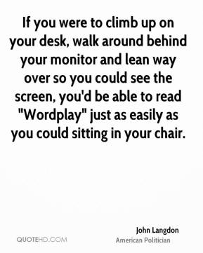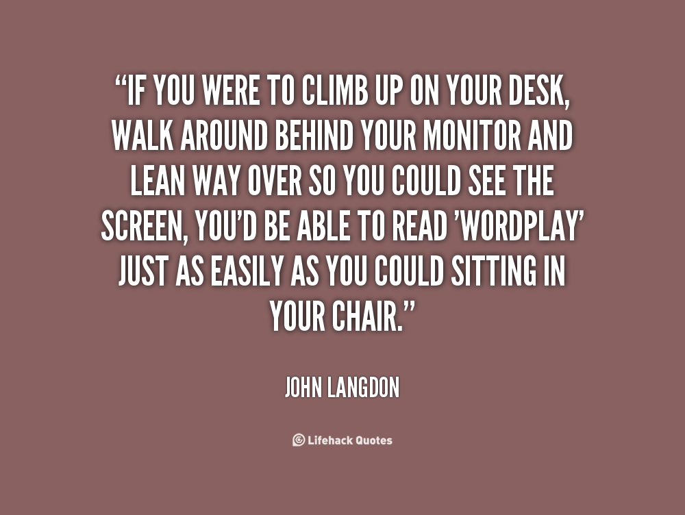 If you were to climb up on your desk, walk around behind your monitor and lean way over so you could see the screen, you'd be able to read 'Wordplay' just as easily as you could sitting in your chair.
