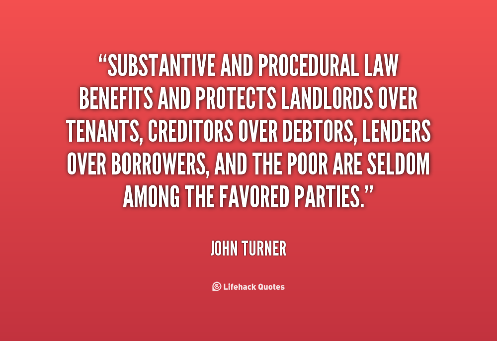 Substantive and procedural law benefits and protects landlords over tenants, creditors over debtors, lenders over borrowers, and the poor are seldom among the favored parties.