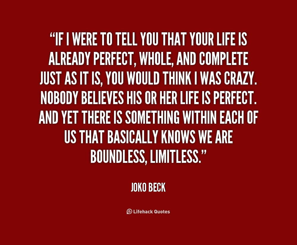 If I were to tell you that your life is already perfect, whole, and complete just as it is, you would think I was crazy. Nobody believes his or her life is perfect. And yet there is something within each of us that basically knows we are boundless, limitless.