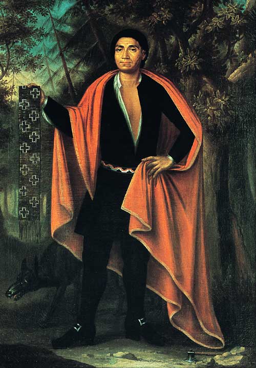 Thayendanegea or Joseph Brant was a Mohawk military and political leader, based in present-day New York, who was closely associated with Great Britain during and after the American Revolution. Perhaps the Native American of his generation best known to the Americans and British, he met many of the most significant Anglo-American people of the age, including both George Washington and King George III... (wikipedia)