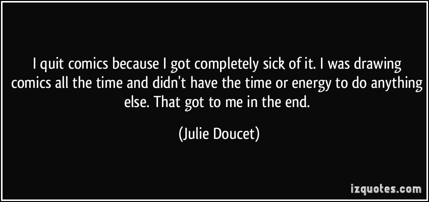 Julie Doucet (born December 31, 1965 in Montreal, Quebec, Canada) is a Canadian former underground cartoonist and artist, best known for her autobiographical works such as Dirty Plotte and My New York Diary. Her work is concerned with such topics as "sex, violence, menstruation and male/female issues.".. (wikipedia)