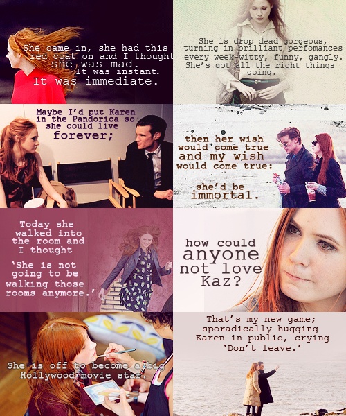 Karen Sheila Gillan is a Scottish actress, director, and former model. She is known for the role of Amy Pond in the BBC science fiction series Doctor Who. In film, she has starred as Jane Lockhart in Not Another Happy Ending, Kaylie Russell in the horror film Oculus, Nebula in the Marvel film Guardians of the Galaxy, and Evie in The Big Short... (wikipedia)