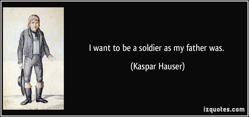 Kaspar Hauser was a German youth who claimed to have grown up in the total isolation of a darkened cell. Hauser's claims, and his subsequent death by stabbing, sparked much debate and controversy. Theories propounded at the time linked him with the grand ducal House of Baden. These have long since been rejected by historians... (wikipedia)