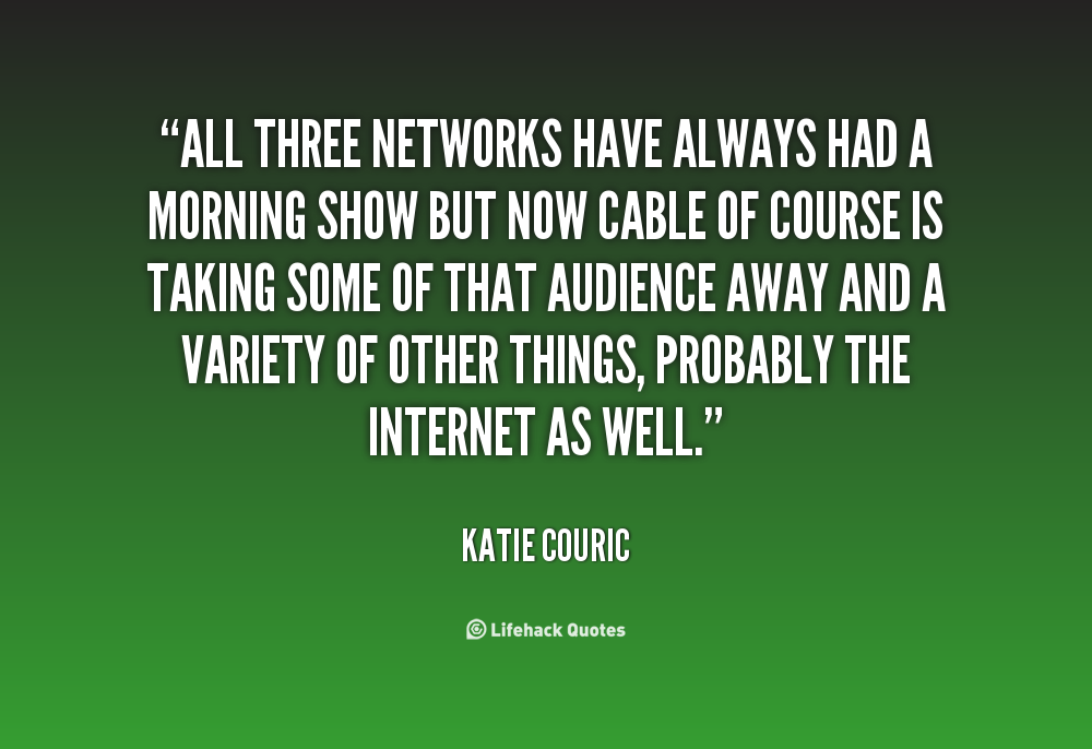 Katherine Anne "Katie" Couric is an American journalist and author. She currently serves as Yahoo! Global News Anchor. Couric has been a television host on all Big Three television networks in the United States. She worked for NBC News from 1989 to 2006, CBS News from 2006 to 2011, and ABC News from 2011 to 2014. In addition to her television news roles, she hosted Katie, a syndicated daytime talk show produced by Disney-ABC Domestic Television from September 10, 2012 to June 9, 2014. Some of her most important notable roles include co-host of Today, anchor of the CBS Evening News, and correspondent for 60 Minutes. She also reported for nearly every television news broadcast across ABC, CBS and NBC. Couric's first book, The Best Advice I Ever Got: Lessons from Extraordinary Lives was a New York Times best-seller. In 2004, Couric earned induction into the Television Hall of Fame... (wikipedia)