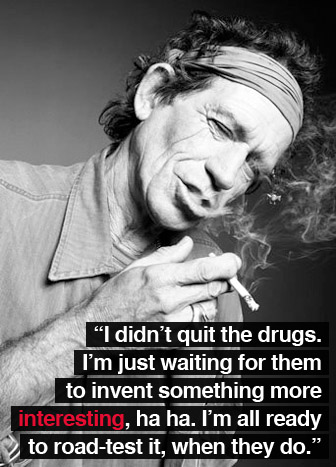 Keith Richards is an English musician, singer and songwriter, actor, and one of the original members of the rock band The Rolling Stones. Rolling Stone Magazine credited Richards for "rock's greatest single body of riffs" on guitar and ranked him 4th on its list of 100 best guitarists. Fourteen songs that Richards wrote with the Rolling Stones' lead vocalist Mick Jagger are listed among Rolling Stone magazine's "500 Greatest Songs of All Time". The Stones are generally known for their guitar interplay of rhythm and lead with Brian Jones, Mick Taylor and Ronnie Wood over the years. In spite of this, Richards plays the only guitar tracks on some of their most famous songs including "Paint It Black", "Ruby Tuesday", "Sympathy for the Devil", and "Gimme Shelter"... (wikipedia)