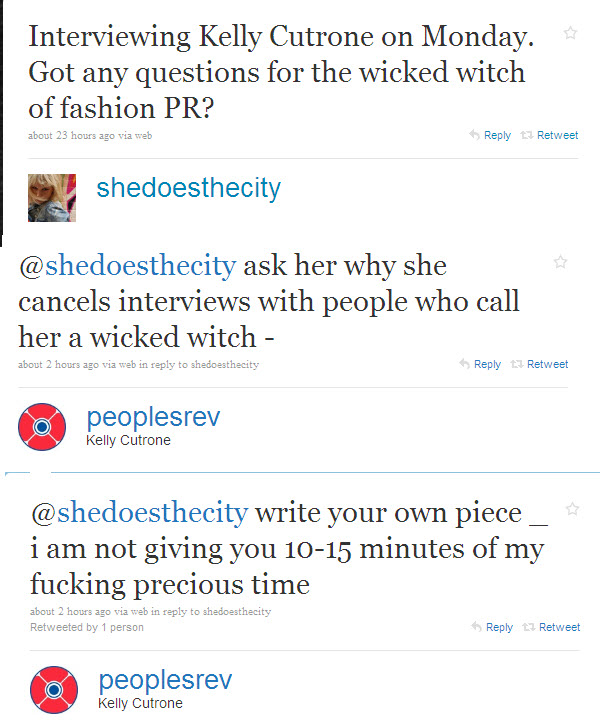 Kelly Cutrone is an American fashion publicist, television personality, and author. Born and raised in Camillus, New York, she attended West Genesee High School. In 1996, Cutrone rose to prominence after founding PR firm People's Revolution. In 2008, Cutrone appeared in a supporting position on the reality television series The Hills when she employed its main cast members Lauren Conrad and Whitney Port. After Port relocated to New York City, Cutrone was featured in a The Hills spin-off, The City... (wikipedia)