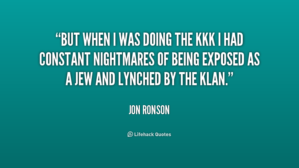 But when I was doing the KKK I had constant nightmares of being exposed as a Jew and lynched by the Klan.