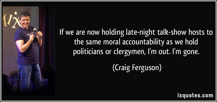 I do a show. It comes on late at night on TV. And if that means I'm a late-night talk show host, then I guess I am, but in every other regard I resign my commission, I don't care for it.