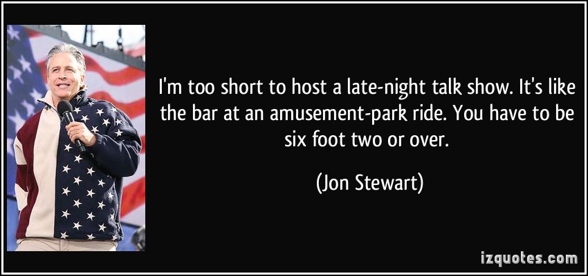 I'm too short to host a late-night talk show. It's like the bar at an amusement-park ride. You have to be six foot two or over.