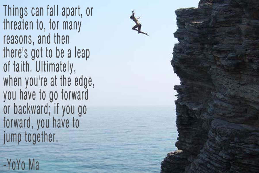 Things can fall apart, or threaten to, for many reasons, and then there's got to be a leap of faith. Ultimately, when you're at the edge, you have to go forward or backward; if you go forward, you have to jump together.