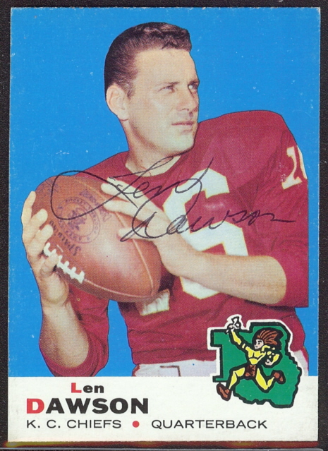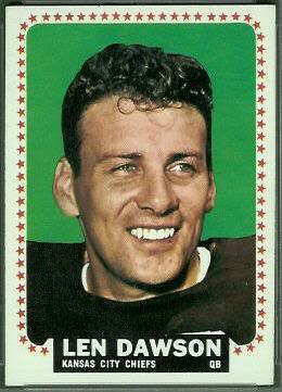 Leonard Ray "Len" Dawson is a former American football quarterback who attended Purdue University and went on to play for three professional teams, most notably the Dallas Texans/Kansas City Chiefs. Dawson led the Chiefs to three American Football League Championships, and a victory in Super Bowl IV, for which he won the game's MVP award. Dawson retired from professional football in 1975 and was inducted into the Pro Football Hall of Fame in 1987. He is sports director at KMBC-TV in Kansas City and color analyst for the Chiefs Radio Network... (wikipedia)