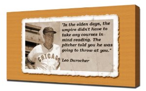 Leo Ernest Durocher, nicknamed Leo the Lip, was an American professional baseball player and manager. He played in Major League Baseball as an infielder. Upon his retirement, he ranked fifth all-time among managers with 2,009 career victories, second only to John McGraw in National League history. Durocher still ranks tenth in career wins by a manager. A controversial and outspoken character, Durocher had a stormy career dogged by clashes with authority, umpires, and the press... (wikipedia)