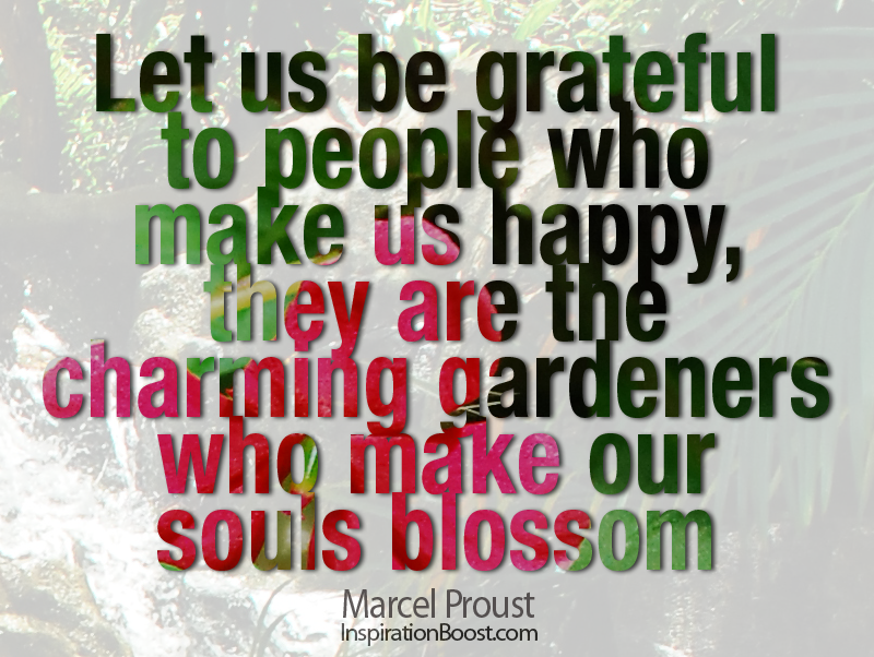 Let us be grateful to people who make us happy, they are the charming gardeners who make our souls blossom.
