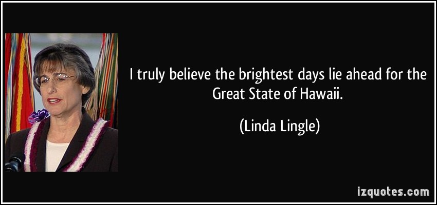 Linda Lingle is an American politician, who was the sixth Governor of Hawaii from 2002 until 2010. She was the first Republican elected governor of Hawaii since the departure of William F. Quinn in 1962. Lingle was also the first female governor of Hawaii; first Jewish governor of Hawaii; first county mayor elected governor of Hawaii; and the first governor of Hawaii not to have any children. Prior to her gubernatorial administration, Lingle served as Maui County mayor, council member, and chair of the Hawaii Republican Party... (wikipedia)