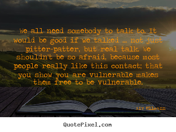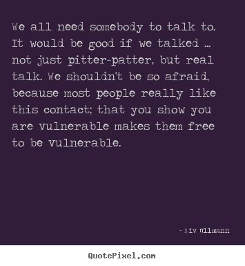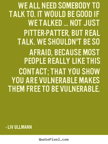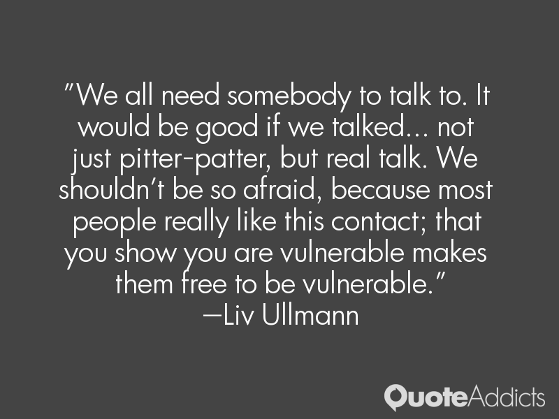 We all need somebody to talk to. It would be good if we talked... not just pitter-patter, but real talk. We shouldn't be so afraid, because most people really like this contact; that you show you are vulnerable makes them free to be vulnerable.