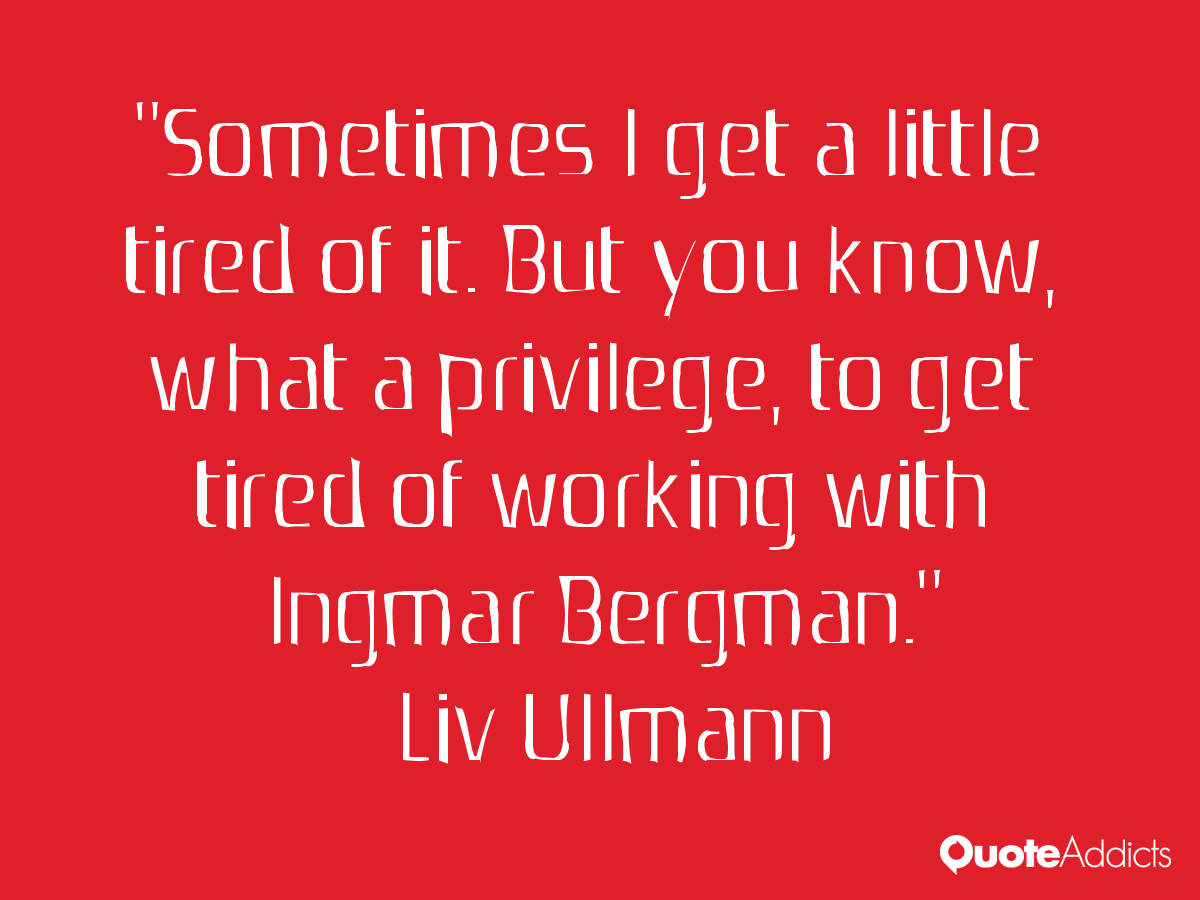Sometimes I get a little tired of it. But you know, what a privilege, to get tired of working with Ingmar Bergman.