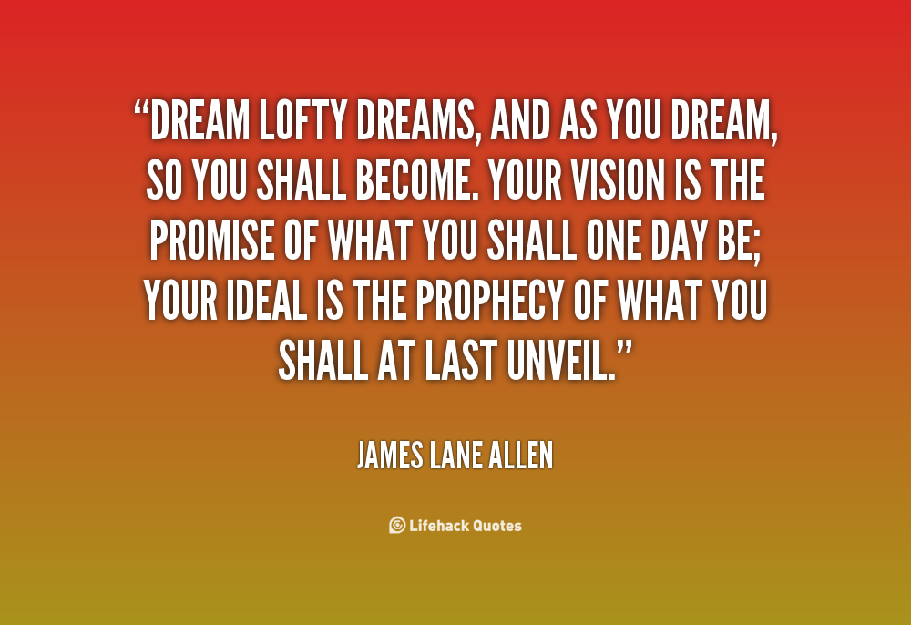 Dream lofty dreams, and as you dream, so you shall become. Your vision is the promise of what you shall one day be; your ideal is the prophecy of what you shall at last unveil.