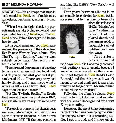 Lewis Allan "Lou" Reed was an American musician, singer, and songwriter. He was the guitarist, vocalist, and principal songwriter of the Velvet Underground, and his solo career spanned several decades... (wikipedia)