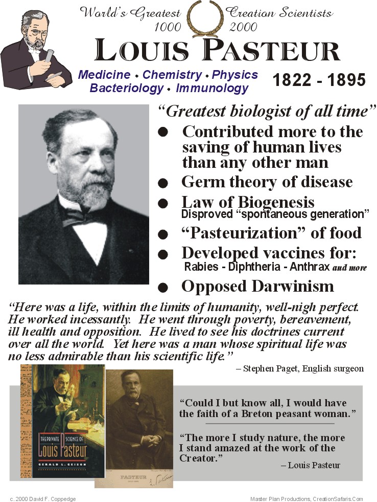 Louis Pasteur was a French chemist and microbiologist renowned for his discoveries of the principles of vaccination, microbial fermentation and pasteurization. He is remembered for his remarkable breakthroughs in the causes and preventions of diseases, and his discoveries have saved countless lives ever since. He reduced mortality from puerperal fever, and created the first vaccines for rabies and anthrax. His medical discoveries provided direct support for the germ theory of disease and its application in clinical medicine. He is best known to the general public for his invention of the technique of treating milk and wine to stop bacterial contamination, a process now called pasteurization. He is regarded as one of the three main founders of bacteriology, together with Ferdinand Cohn and Robert Koch, and is popularly known as the "father of microbiology"... (wikipedia)