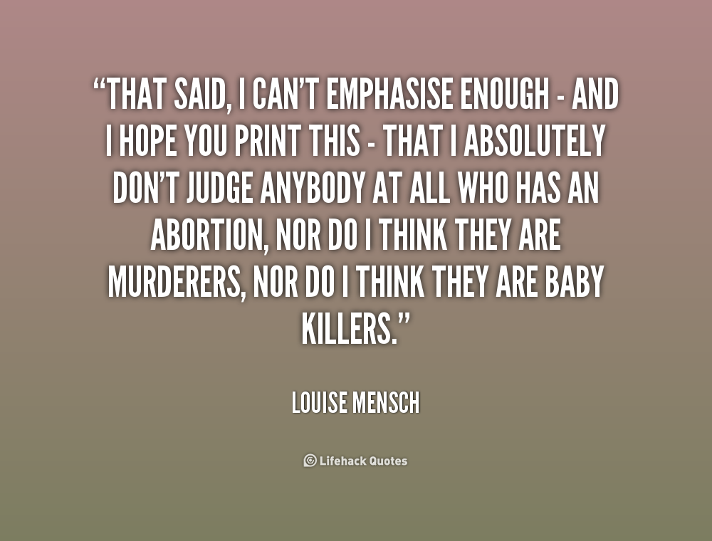 That said, I can't emphasise enough - and I hope you print this - that I absolutely don't judge anybody at all who has an abortion, nor do I think they are murderers, nor do I think they are baby killers.