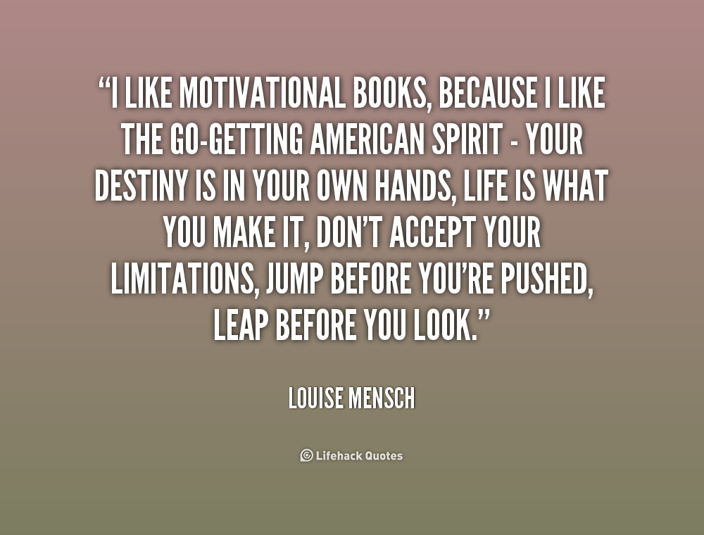 I like motivational books, because I like the go-getting American spirit - your destiny is in your own hands, life is what you make it, don't accept your limitations, jump before you're pushed, leap before you look.