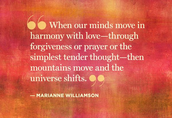 Marianne Deborah Williamson is an American spiritual teacher, author and lecturer. She has published ten books, including four New York Times number one bestsellers. She is the founder of Project Angel Food, a meals-on-wheels program that serves homebound people with AIDS in the Los Angeles area, and the co-founder of The Peace Alliance, a grassroots campaign supporting legislation to establish a United States Department of Peace. She serves on the Board of Directors of the RESULTS organization, which works to end poverty in the United States and around the world. Williamson is also the force behind Sister Giant, a series of seminars and teaching sessions that provides women with the information and tools needed to be political candidates. Through these seminars, she encourages women to run for office and align their politics with their spiritual values... (wikipedia)