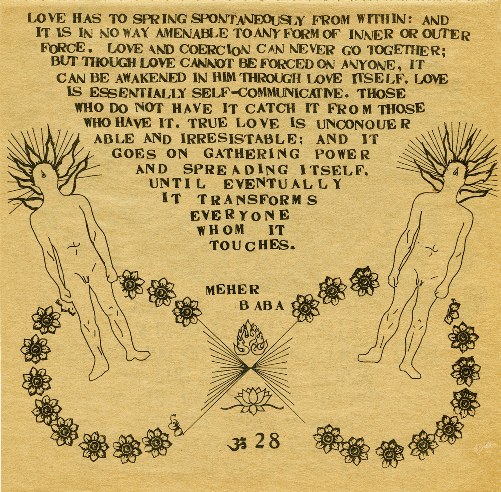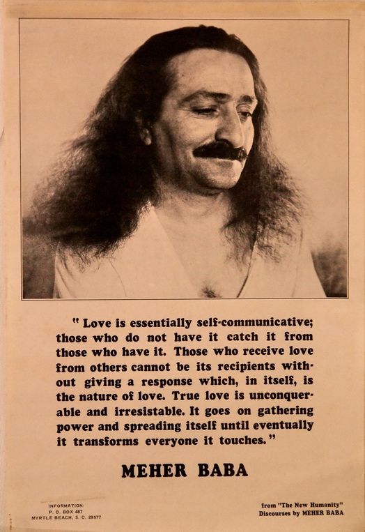 Meher Baba, born Merwan Sheriar Irani, was an Indian spiritual master who said he was the Avatar, God in human form... (wikipedia)