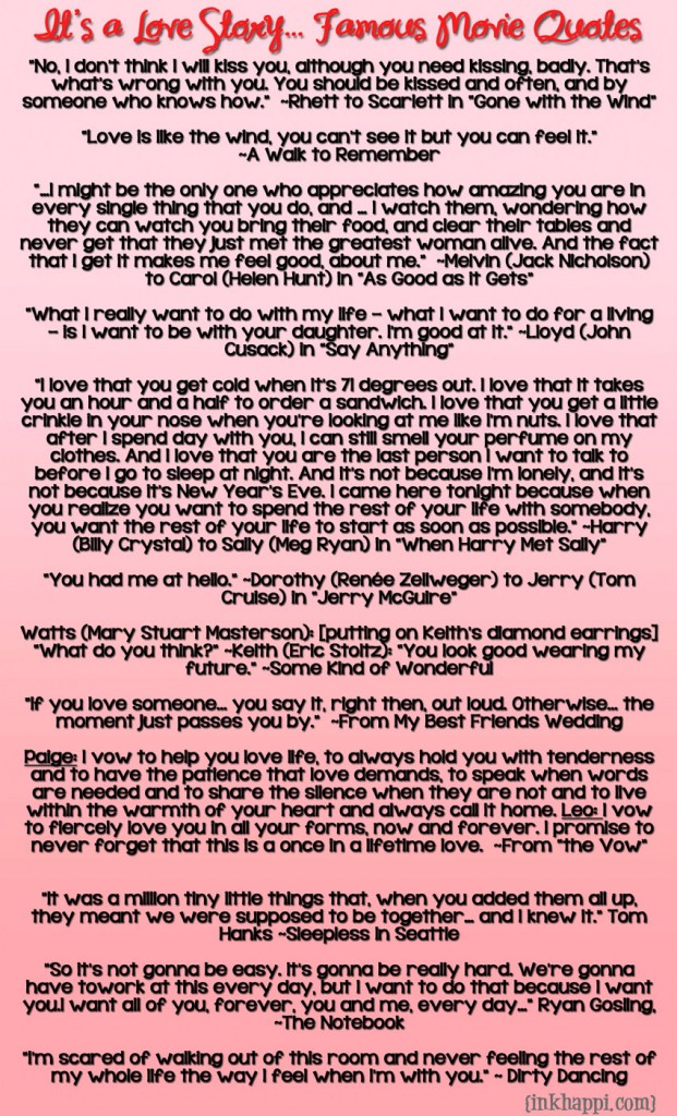 I want to turn my attention to movies about love relationships. Exploring the female psyche - there ought to be some interesting discoveries there. Love stories. If you do it right, people want to hear romantic dialog.