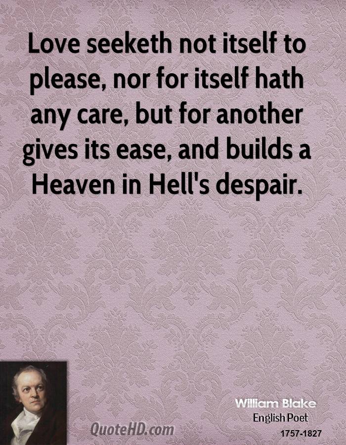 William Blake was an English poet, painter, and printmaker. Largely unrecognised during his lifetime, Blake is now considered a seminal figure in the history of the poetry and visual arts of the Romantic Age. His prophetic poetry has been said to form "what is in proportion to its merits the least read body of poetry in the English language". His visual artistry led one contemporary art critic to proclaim him "far and away the greatest artist Britain has ever produced". In 2002, Blake was placed at number 38 in the BBC's poll of the 100 Greatest Britons. Although he lived in London his entire life, he produced a diverse and symbolically rich œuvre, which embraced the imagination as "the body of God" or "human existence itself"... (wikipedia)