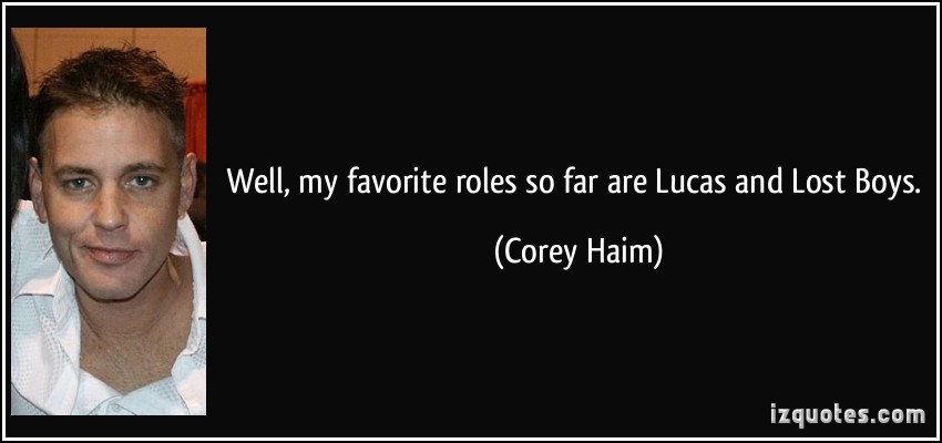 Corey Ian Haim was a Canadian actor, known for a 1980s Hollywood career as a teen idol. He starred in a number of films, such as Lucas, Silver Bullet, Murphy's Romance, License to Drive, Dream a Little Dream, and Snowboard Academy. His best-known role was alongside Corey Feldman in The Lost Boys, which made Haim a household name... (wikipedia)