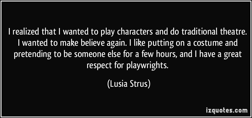 I realized that I wanted to play characters and do traditional theatre. I wanted to make believe again. I like putting on a costume and pretending to be someone else for a few hours, and I have a great respect for playwrights.