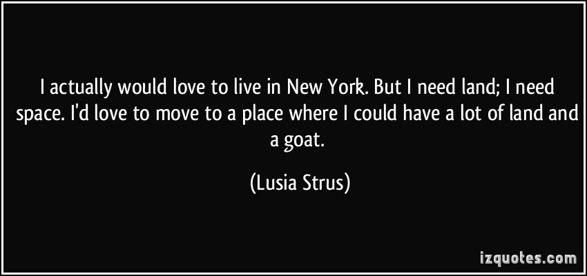 I actually would love to live in New York. But I need land; I need space. I'd love to move to a place where I could have a lot of land and a goat.