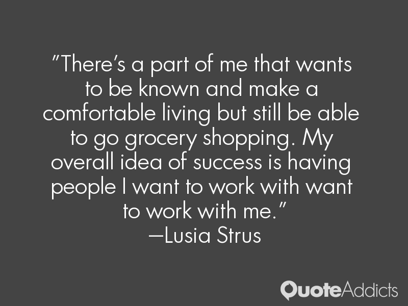 There's a part of me that wants to be known and make a comfortable living but still be able to go grocery shopping. My overall idea of success is having people I want to work with want to work with me.