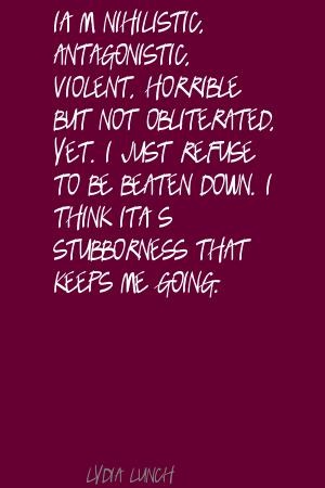 Lydia Lunch is an American singer, poet, writer, actress and self-empowerment speaker whose career was spawned by the New York No Wave scene. The Boston Phoenix named Lunch "one of the 10 most influential performers of the 1980s.".. (wikipedia)