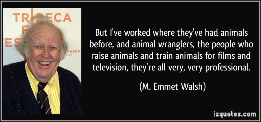 But I've worked where they've had animals before, and animal wranglers, the people who raise animals and train animals for films and television, they're all very, very professional.