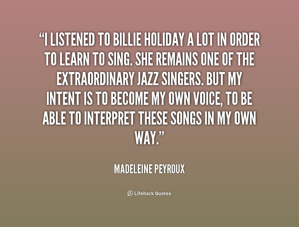 I listened to Billie Holiday a lot in order to learn to sing. She remains one of the extraordinary jazz singers. But my intent is to become my own voice, to be able to interpret these songs in my own way.
